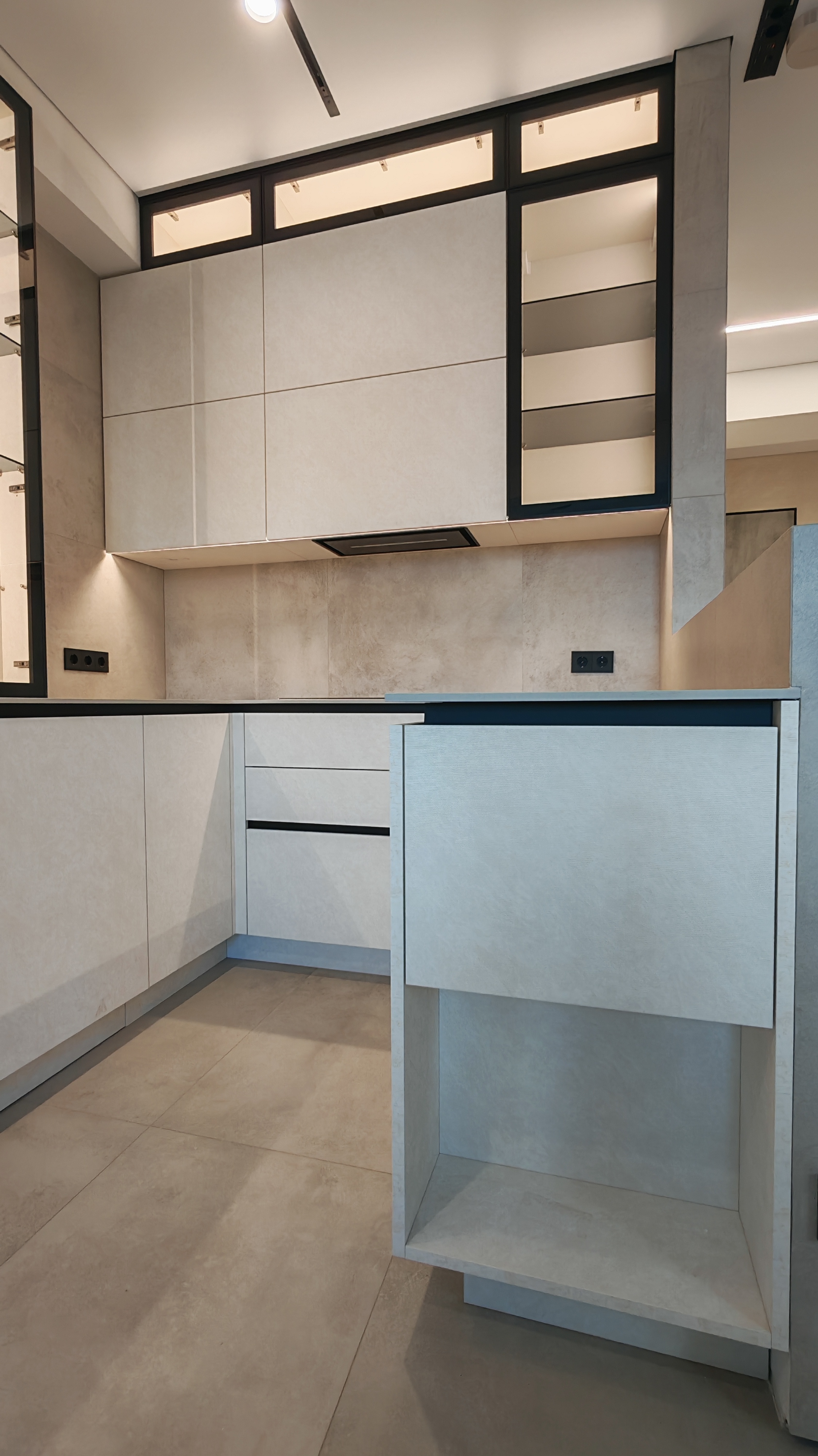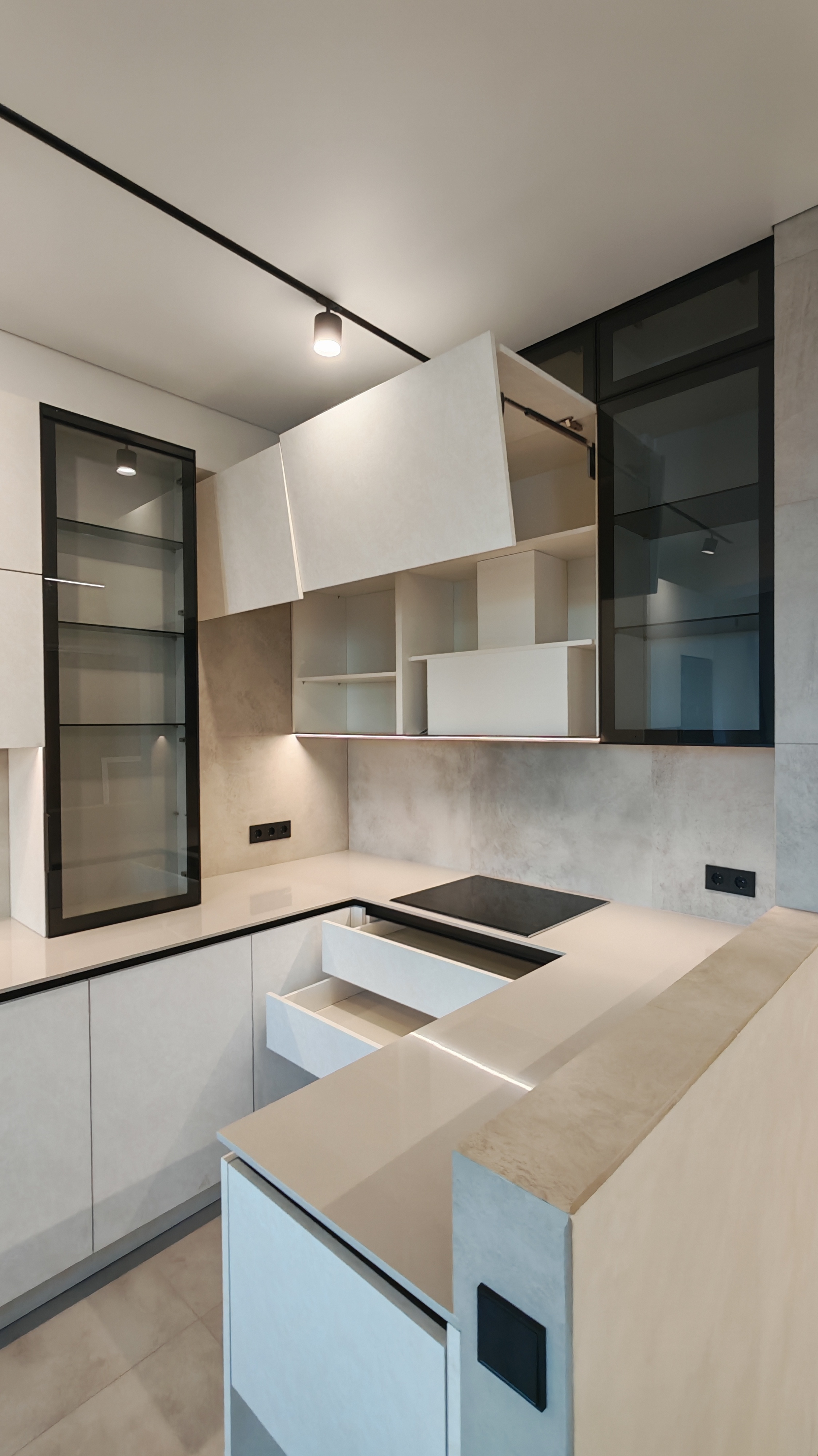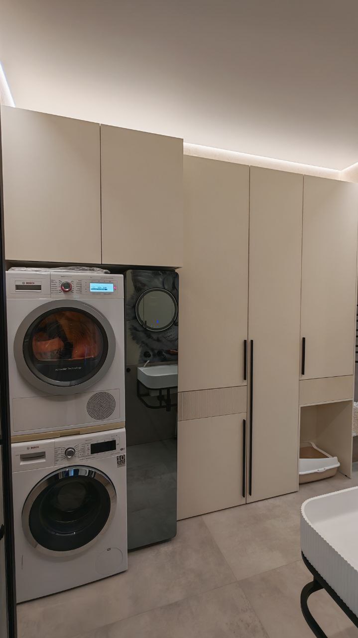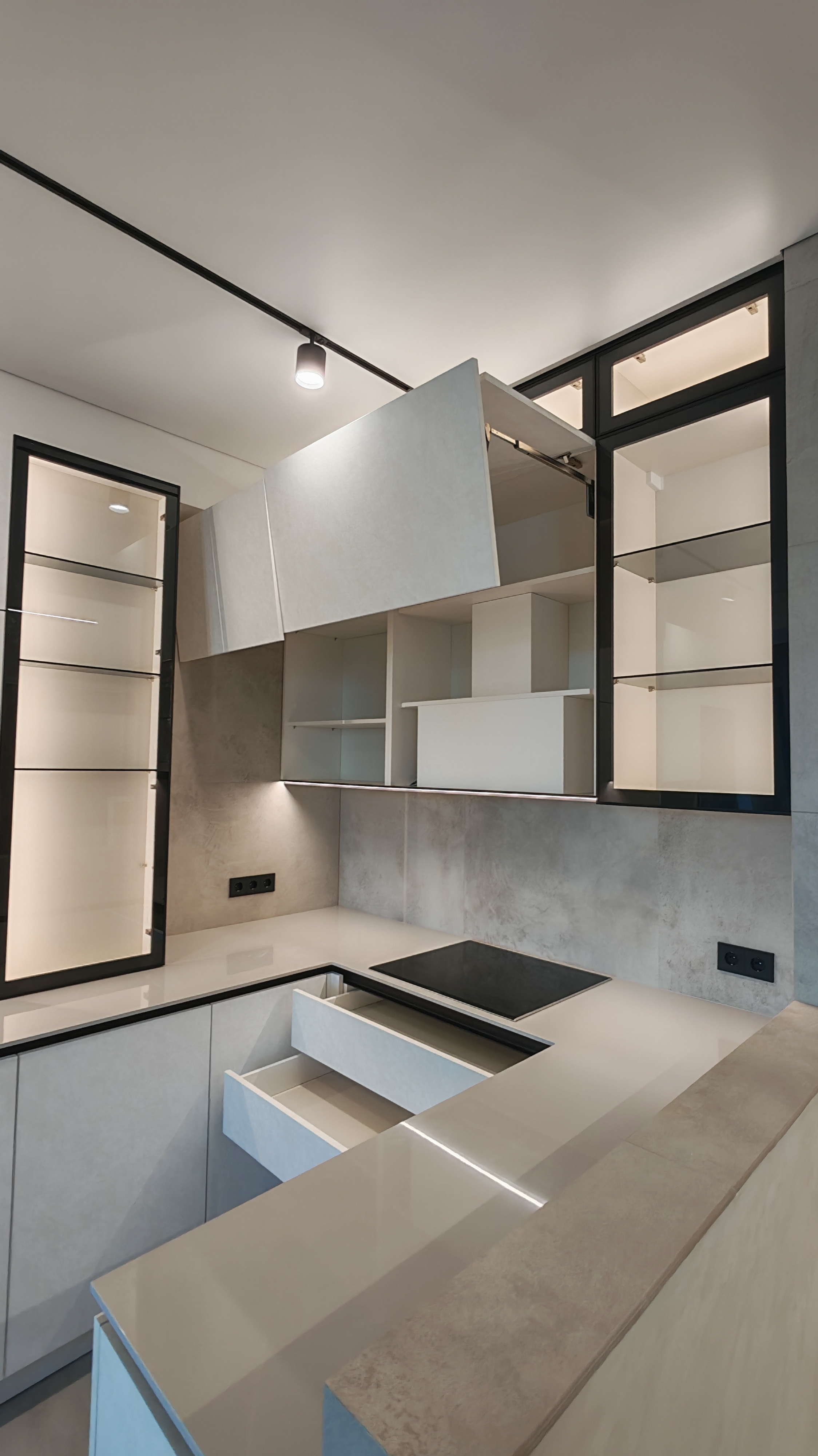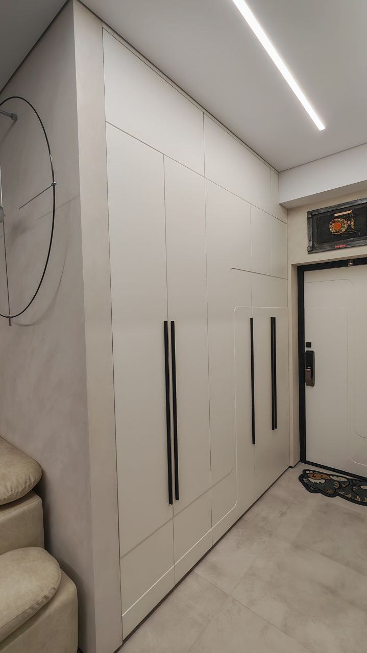 Чёткие линии, скрытые ручки, встроенное освещение и продуманные системы хранения — всё работает на комфорт.
