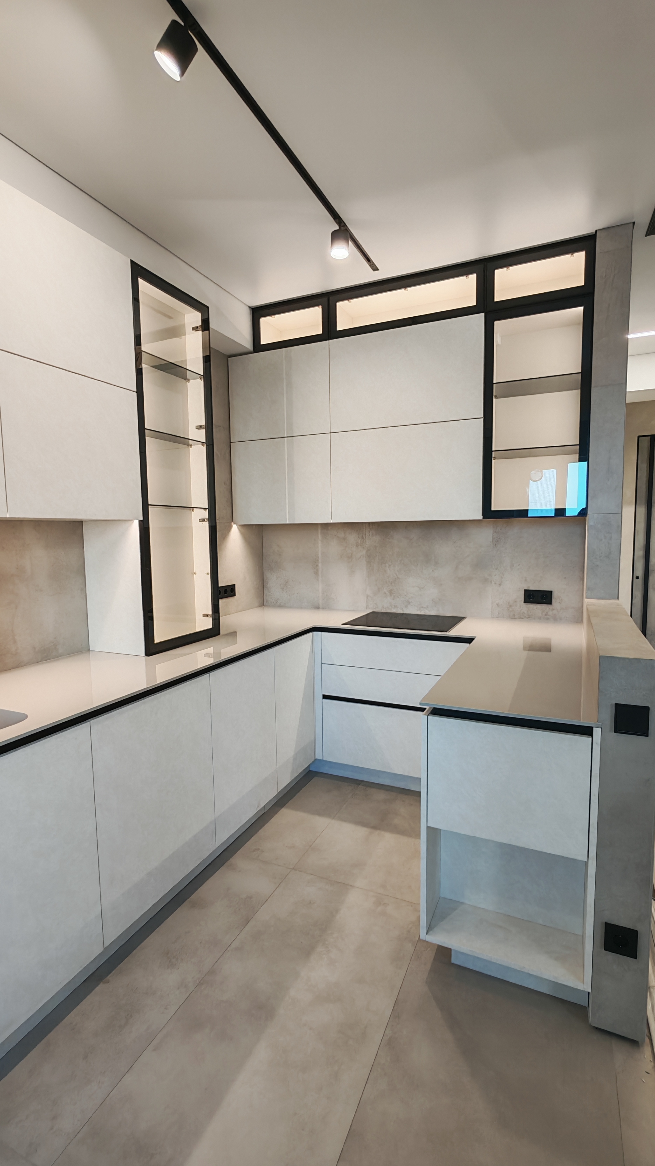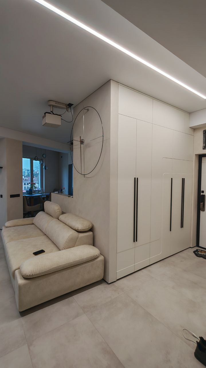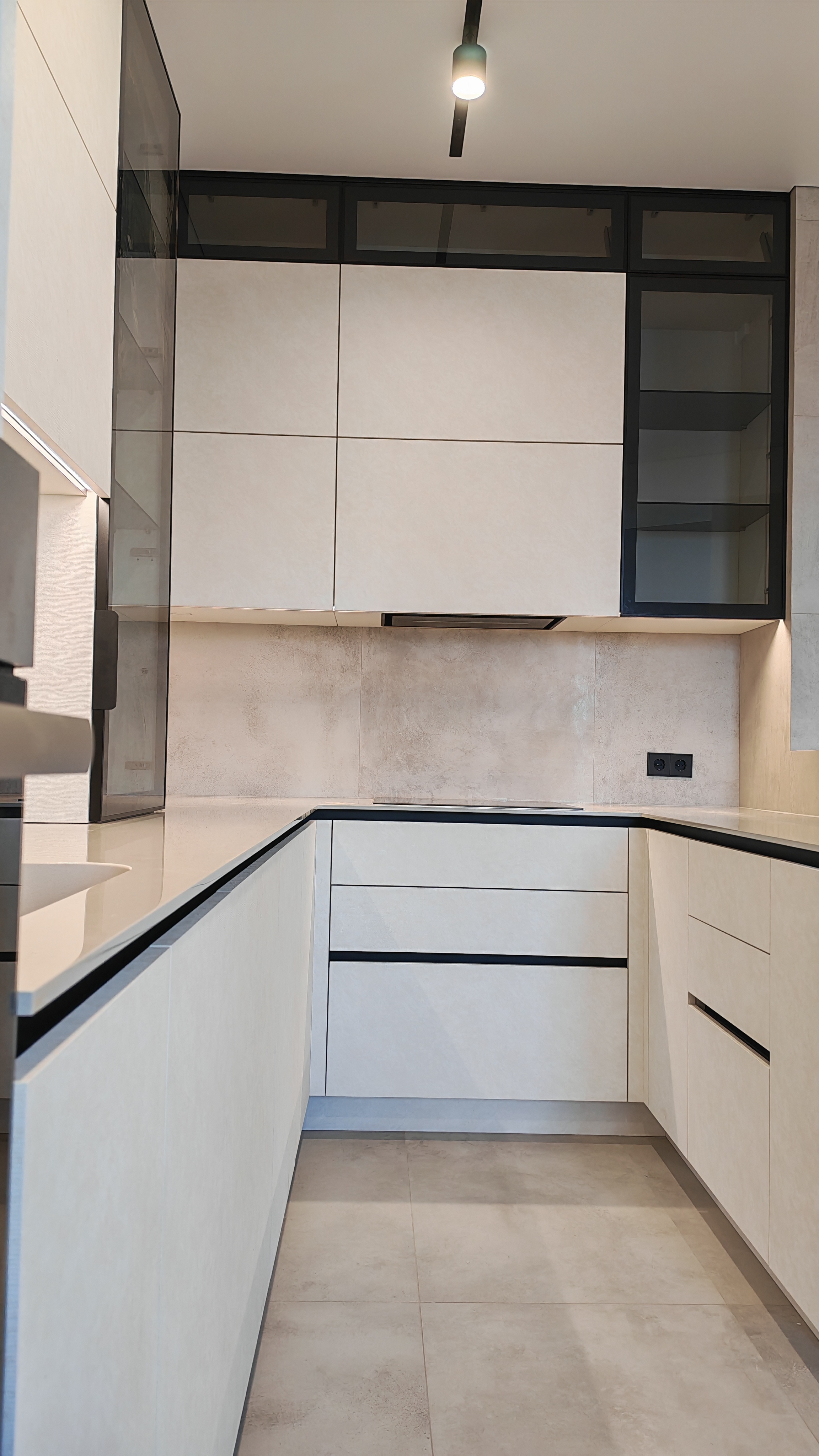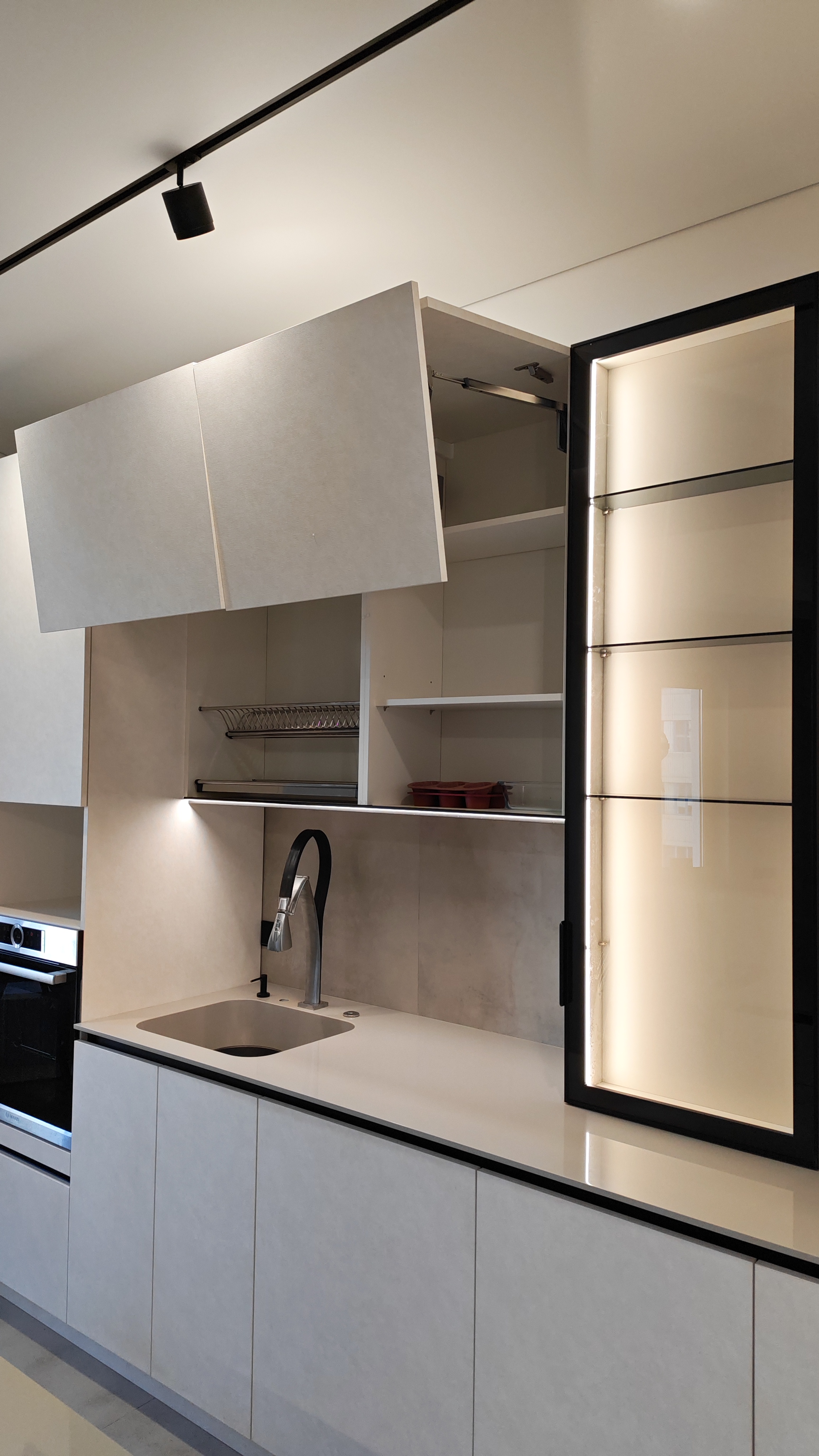 Чёткие линии, скрытые ручки, встроенное освещение и продуманные системы хранения — всё работает на комфорт.