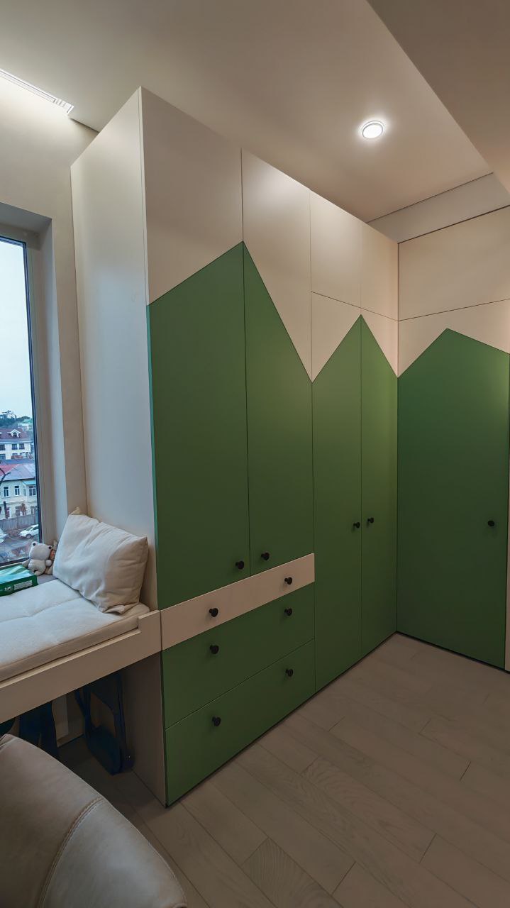 В этом проекте мы изготовили мебель для ключевых зон дома: кухни, прихожей, а также шкафы хранения, детской комнаты.